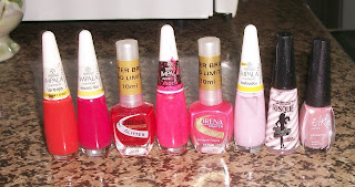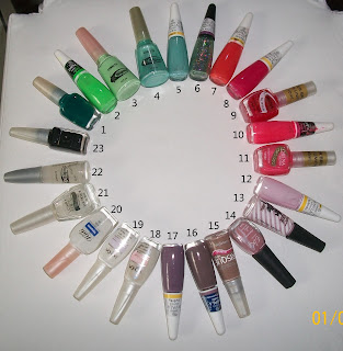 Oi meninas! Boa notícia, to de férias! HÊ! rsrs. Outra boa notícia, encontrei minha máquina!HÊ! E mais outra, minha coisinhas vão chegar hoje, então amanhã vai ter resenha!HÊ! Mas tenho também uma má, meu monitor ta ruinzinho, com uma faixa branca, por isso não dá pra editar direito :( . Mas enfim, não vim aqui pra falar disso, vim mostrar pra vocês todos os meus esmaltes até o momento! Tenho 23 mas pretendo continuar comprando sempre!Não tenho mais porque só esse ano comecei a cuidar direito das minhas unhas, pintar e tudo mais. Quando fazia, usava um da minha mãe (tem uns dela ai no meio).Então vamos lá!